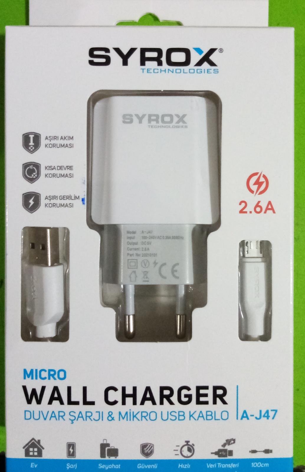 Syrox 2.6A Micro USB Hızlı Şarj Cihazı
