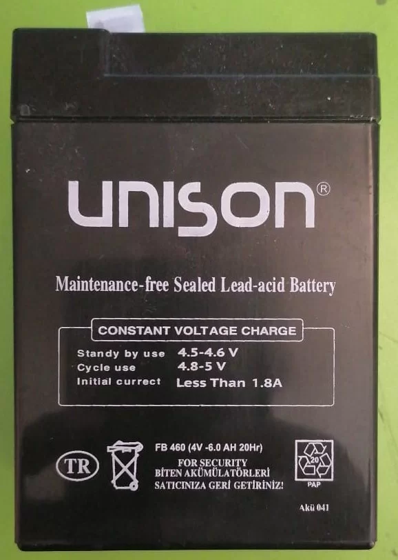 Şarj Edilebilir, Bakım İhtiyacı Olmayan Kurşun Asit Akü. Kullanılmadığı Durumlarda 2 Ayda Bir Şarj Edilerek Şarjının Bitirilmesi Gerekmektedir. Aksi Durumda Şarj Performansı Düşer.