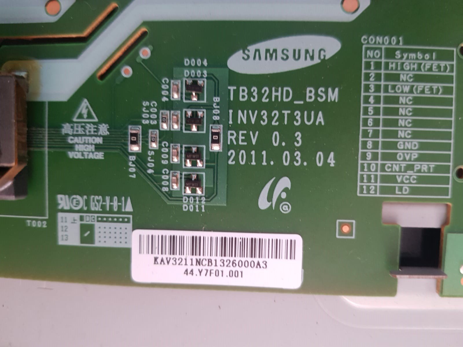SAMSUNG LE32D403E2W,TB32HD-BSMINV32T3UA REV 0.3,INVERTER BOARD
